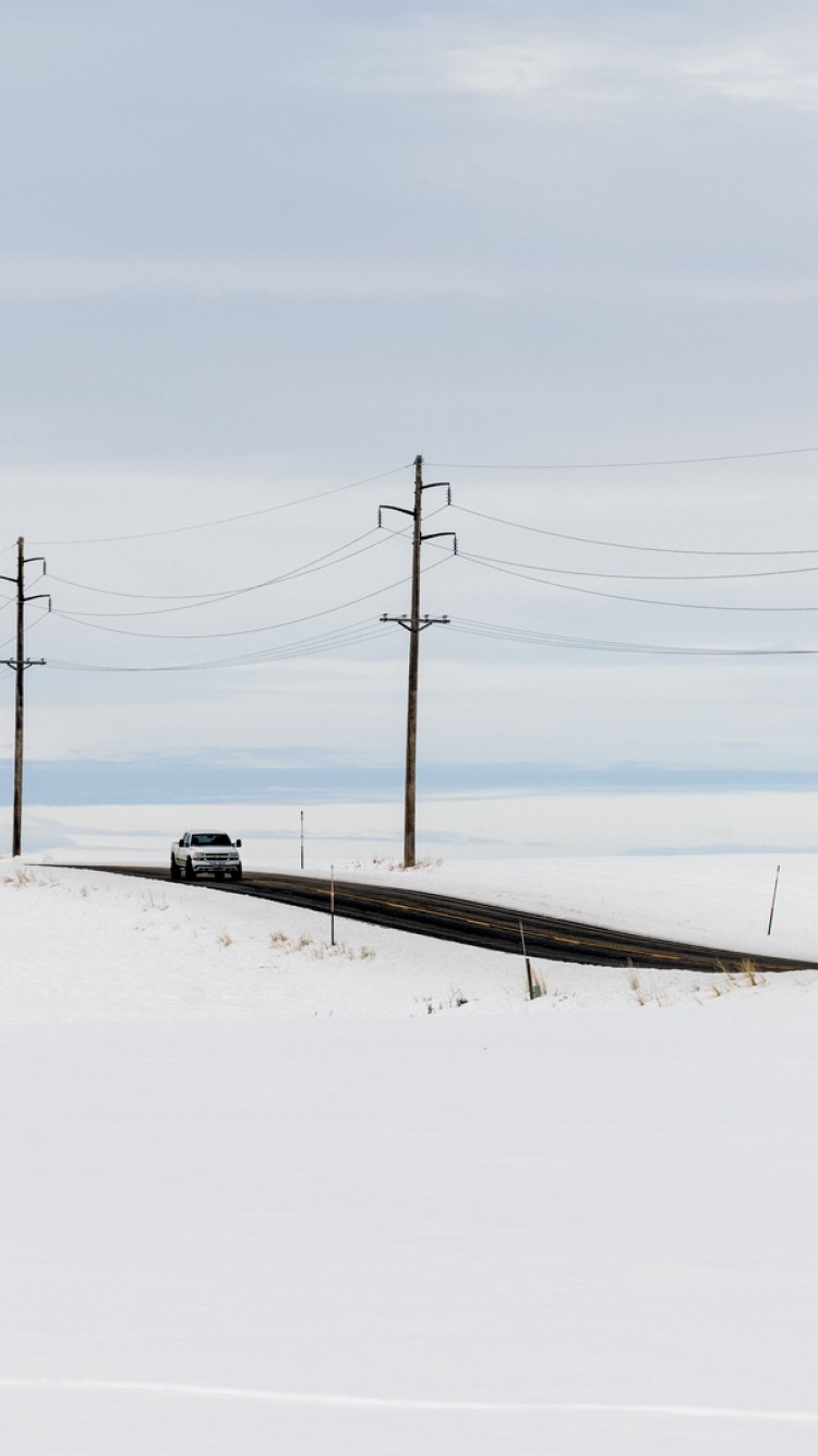Car on a snowy road HD Wallpaper - iPhone 6 / 6S