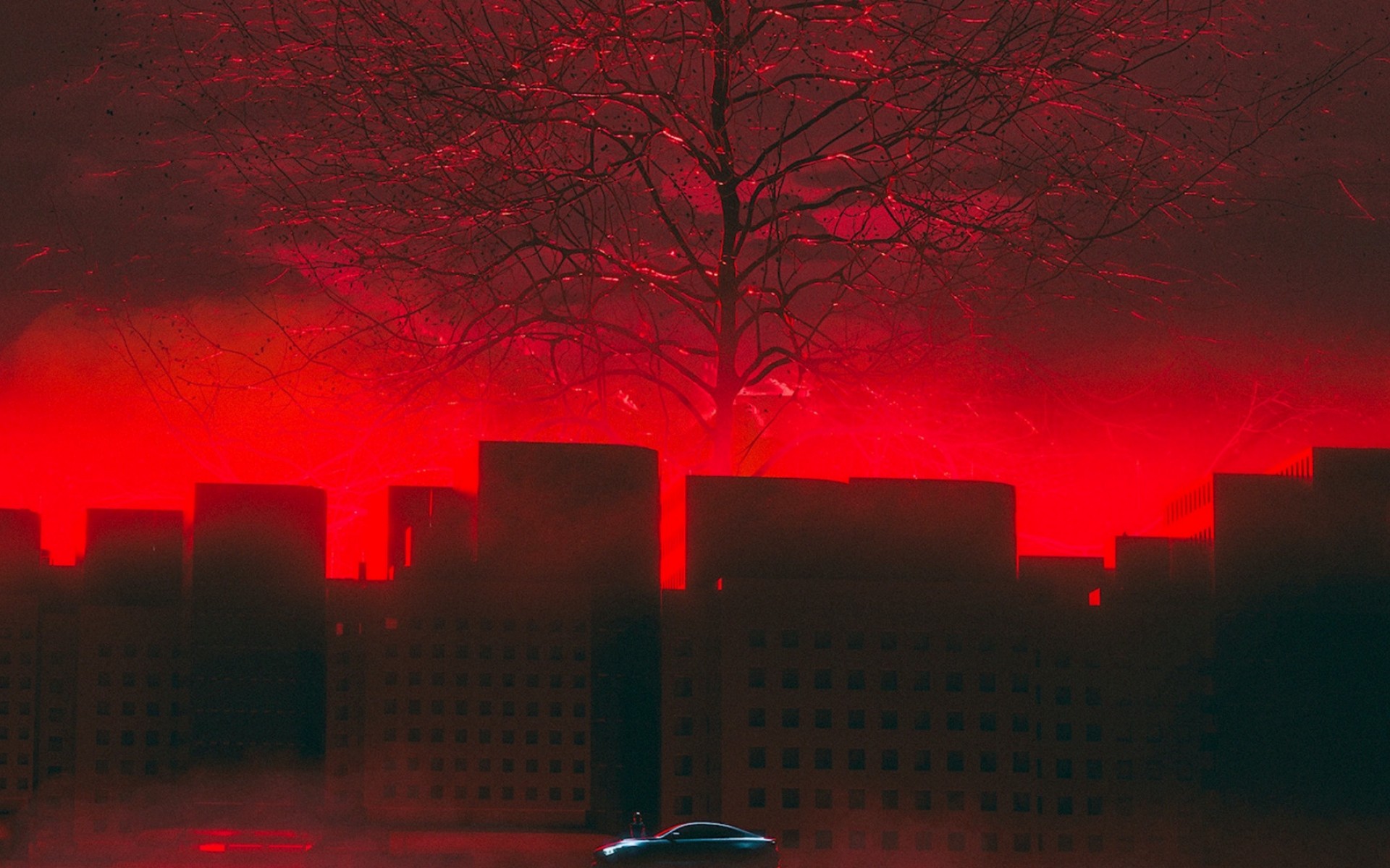 Car under a red sky HD Wallpaper - 1920x1200
