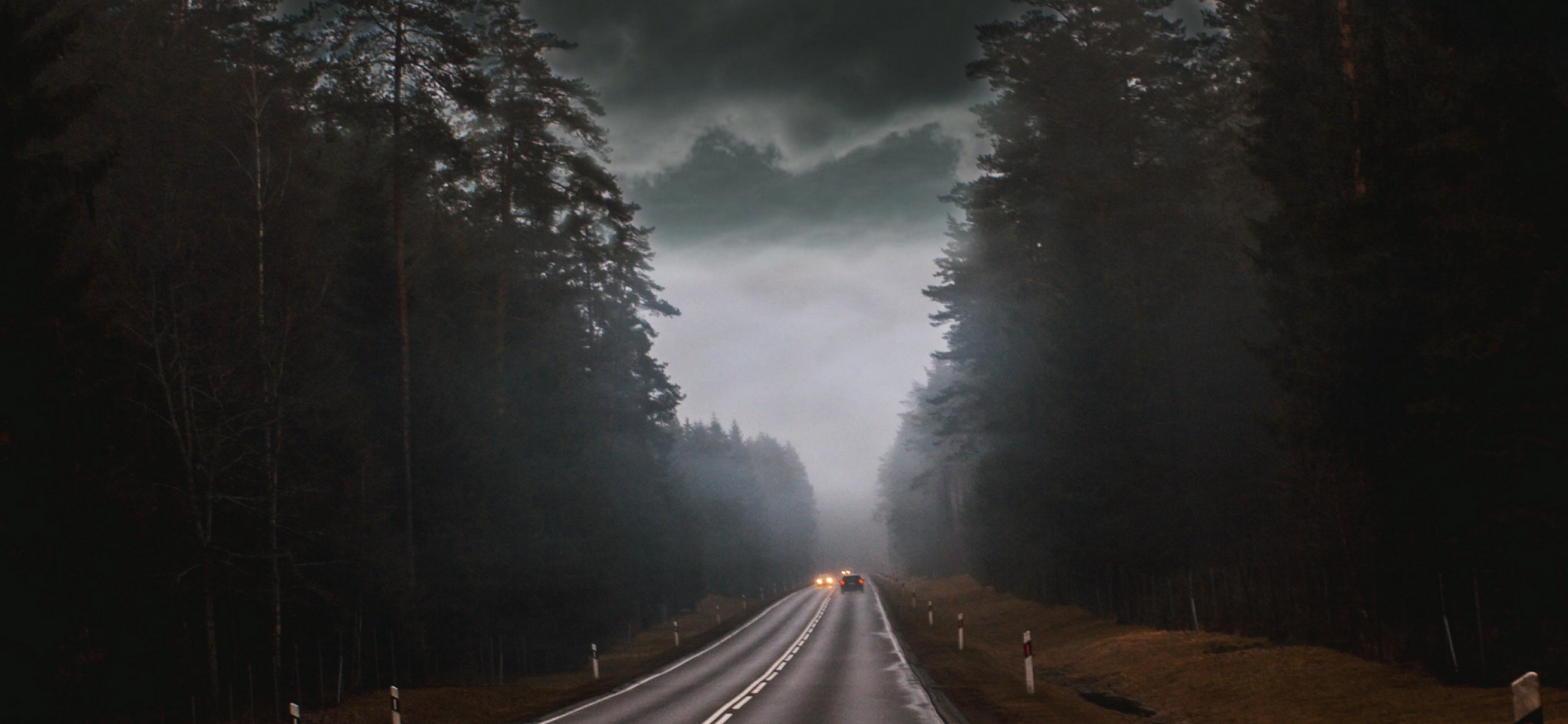 Cars at a foggy road HD Wallpaper - iPhone X