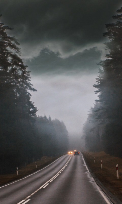 Cars at a foggy road HD Wallpaper - 480x800