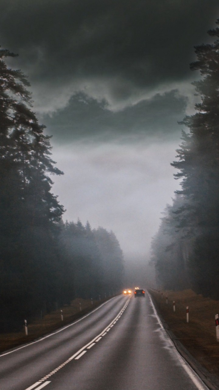 Cars at a foggy road HD Wallpaper - 720x1280