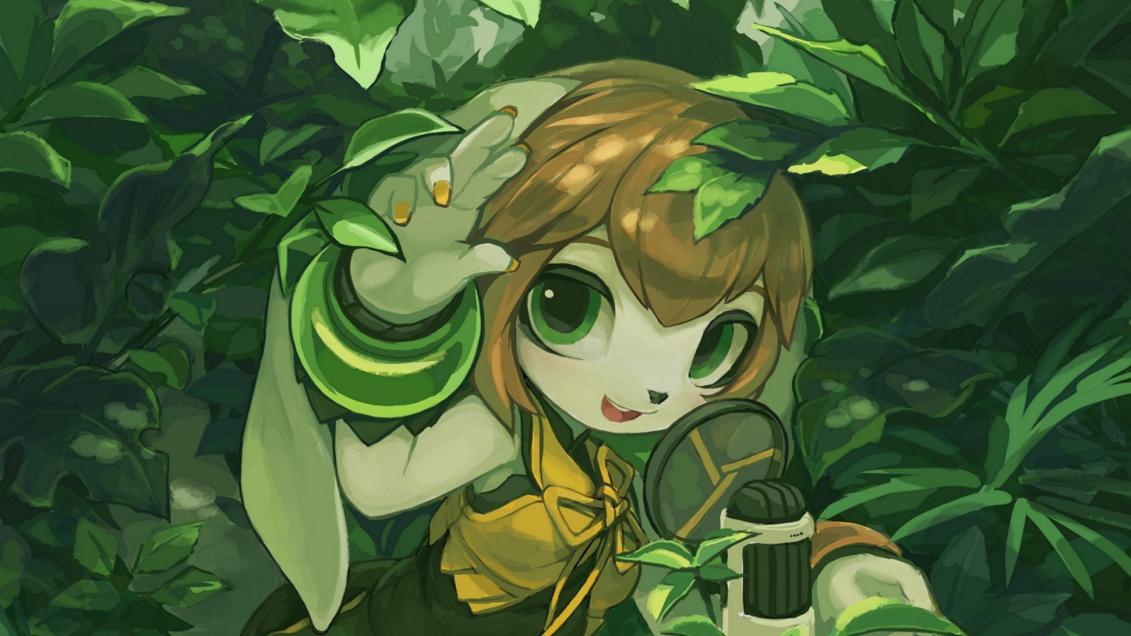 Cartoon girl in the forest HD Wallpaper - 1600x900