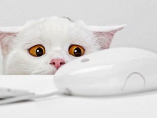 Cat and computer mouse HD Wallpaper - 320x240