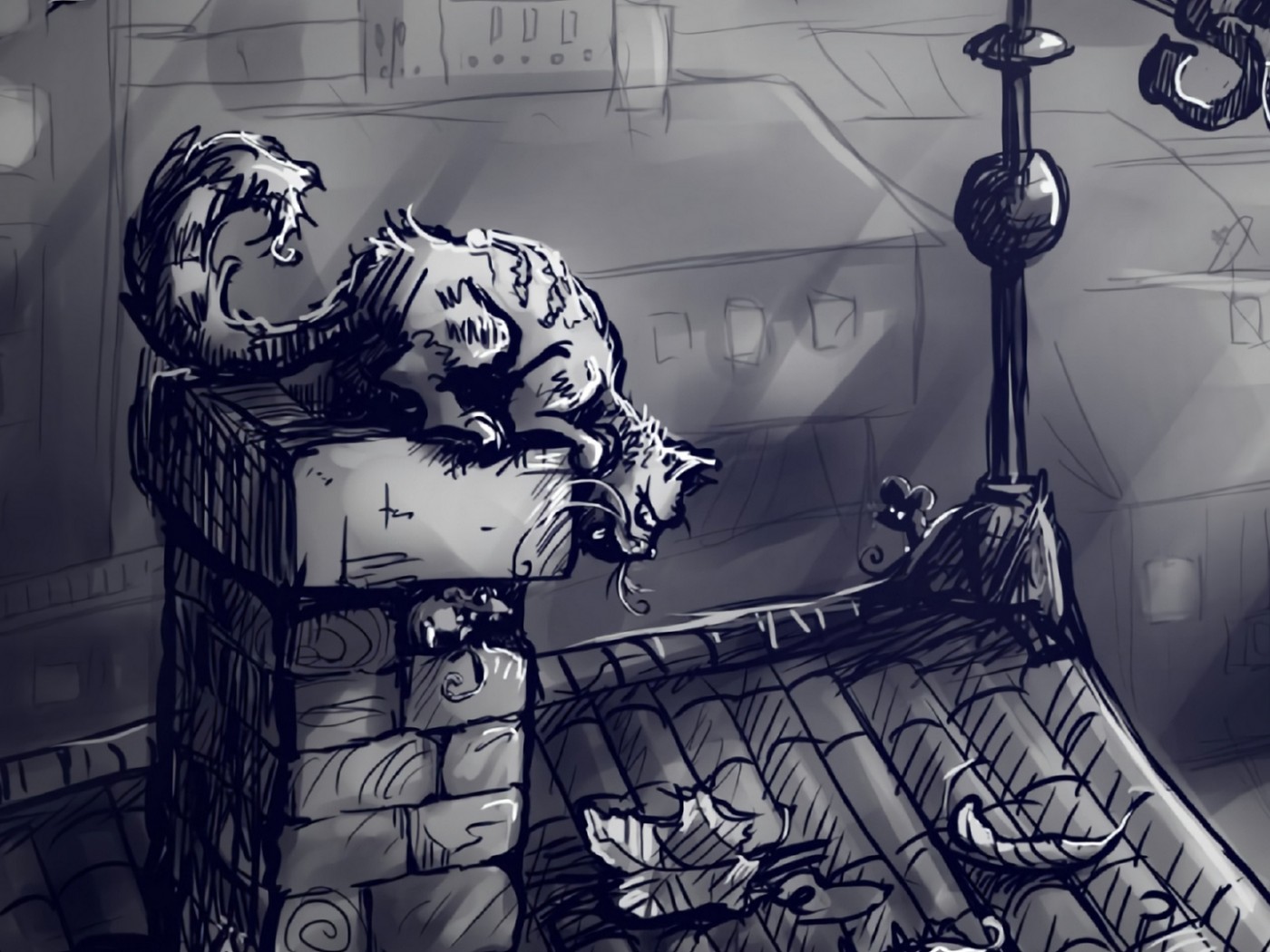 Cat at the roof of a house HD Wallpaper - 1400x1050