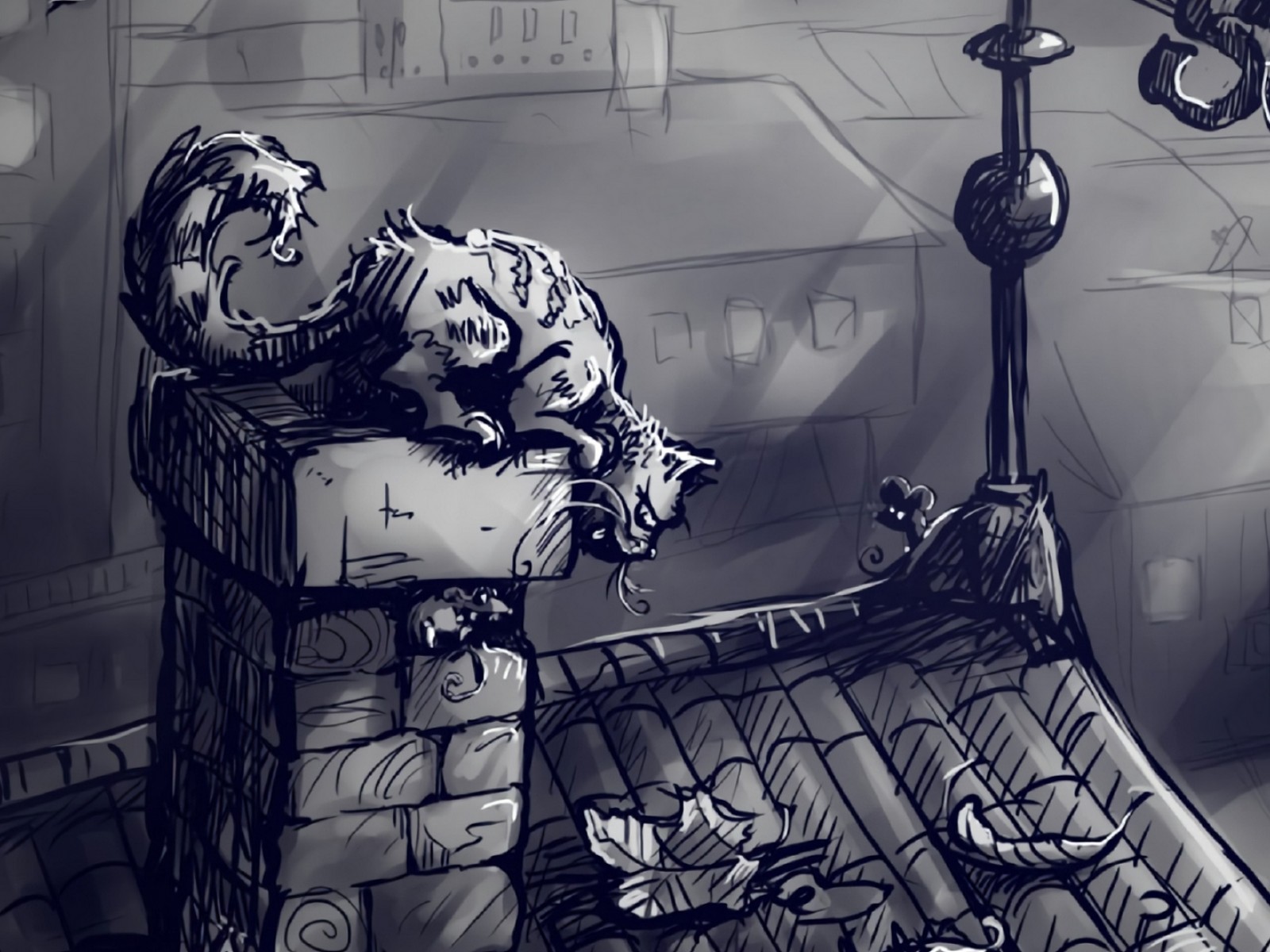Cat at the roof of a house HD Wallpaper - 1600x1200