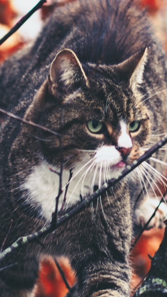 Cat climbing over a tree HD Wallpaper - 540x960
