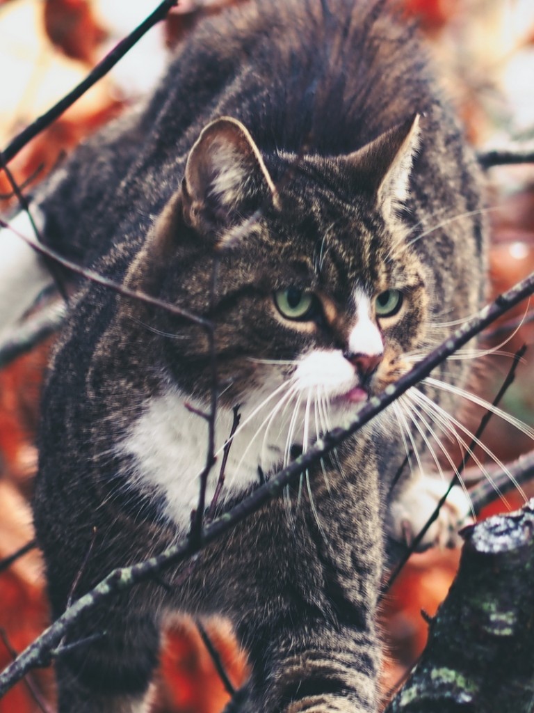 Cat climbing over a tree HD Wallpaper - Non-retina iPad