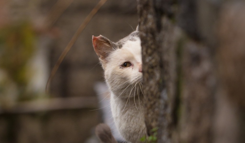 Cat hidding HD Wallpaper - 1024x600