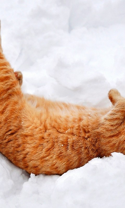Cat lying at the snow HD Wallpaper - 480x800
