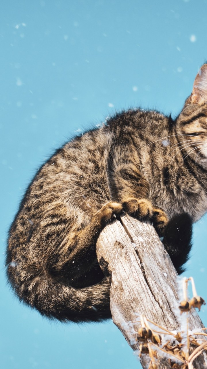Cat standing on the tree HD Wallpaper - 720x1280