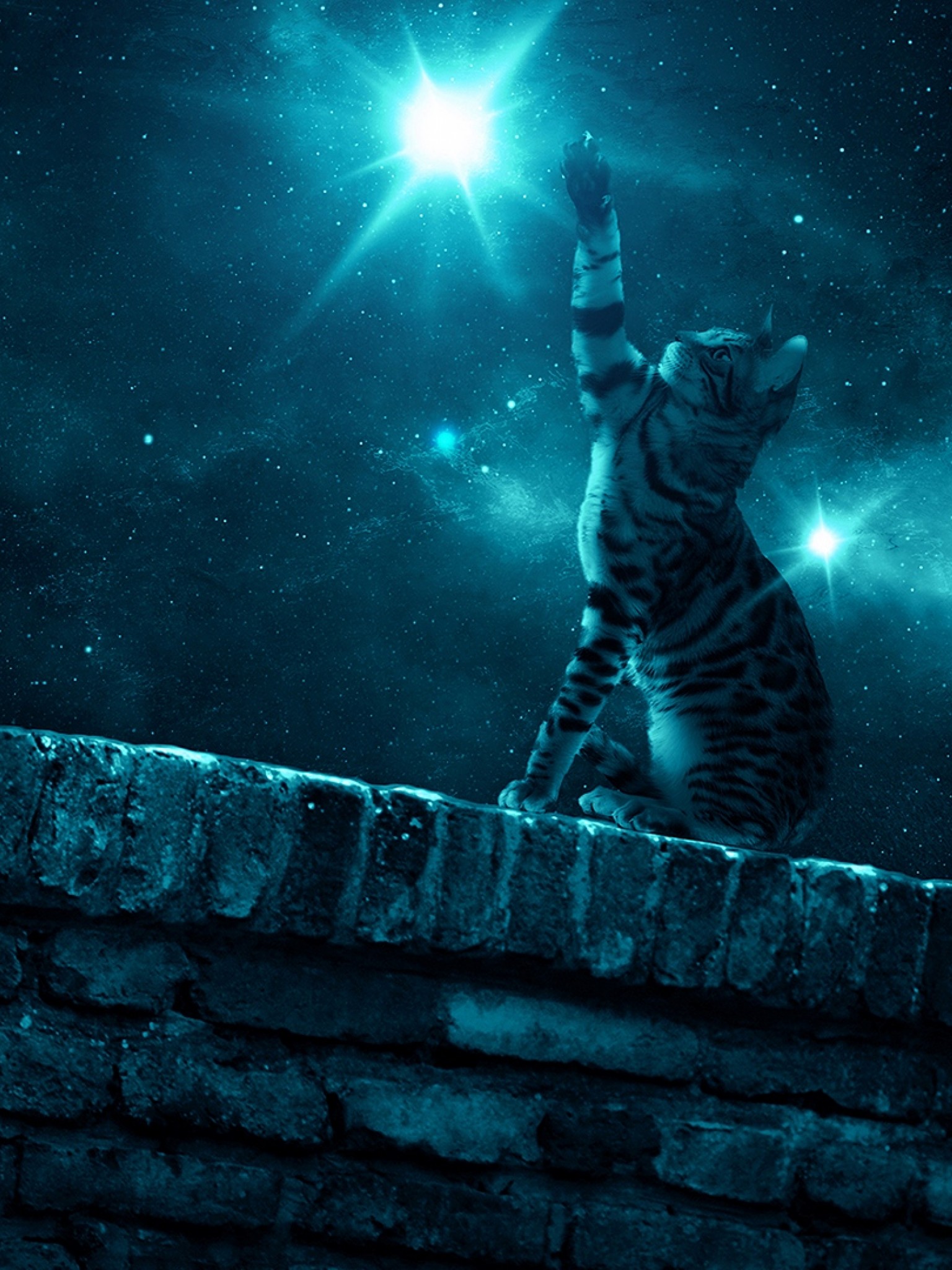 Cat staring sky at night HD Wallpaper - Retina iPad