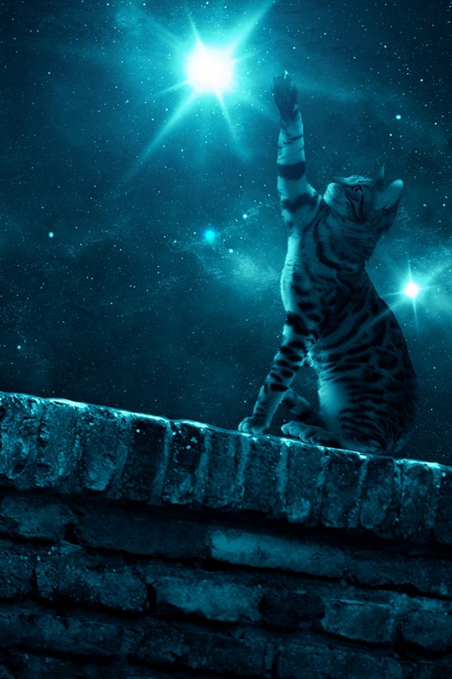Cat staring sky at night HD Wallpaper - iPhone 4 / 4S / iPod