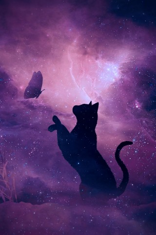 Cat trying to catch a butterfly HD Wallpaper - Older iPhone & iPod