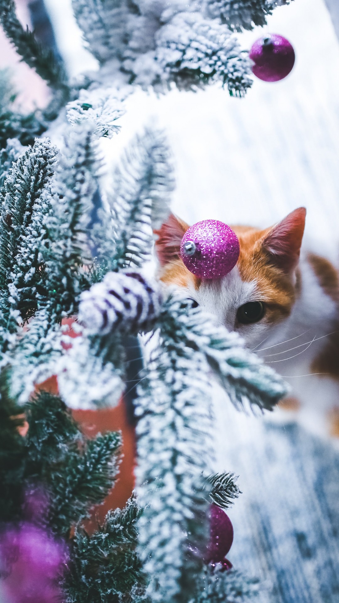 Cat under the Christmas Tree HD Wallpaper - iPhone 6 / 6S Plus