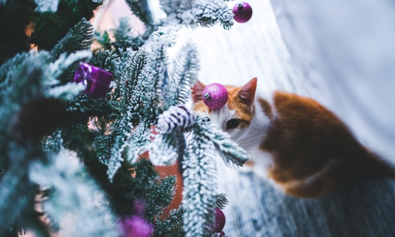 Cat under the Christmas Tree HD Wallpaper - 800x480