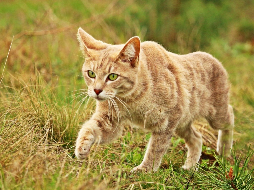 Cat walking at the grass HD Wallpaper - 1024x768