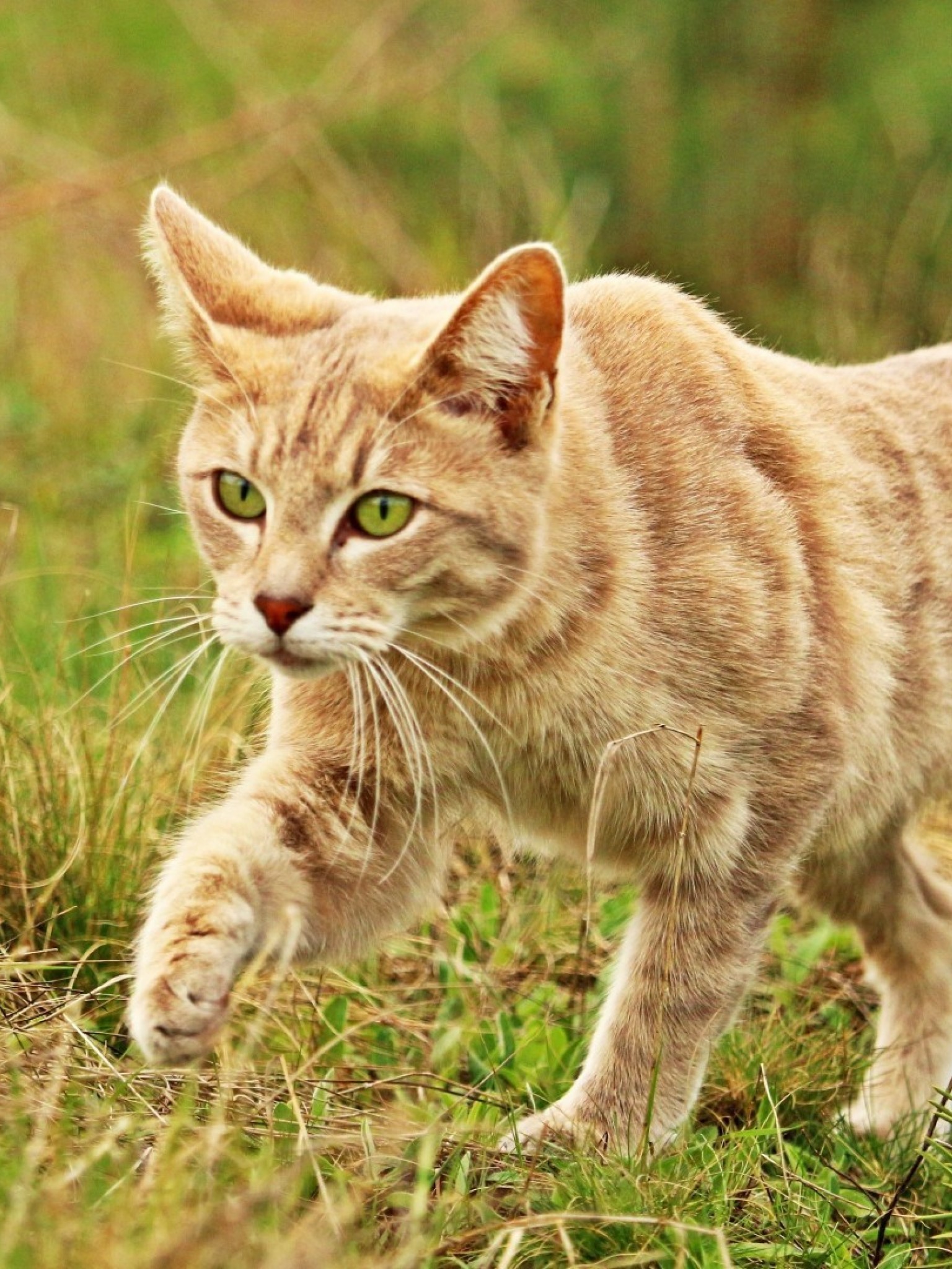 Cat walking at the grass HD Wallpaper - Retina iPad