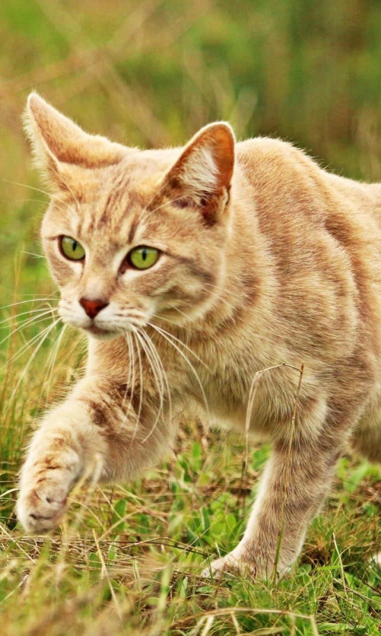 Cat walking at the grass HD Wallpaper - 768x1280