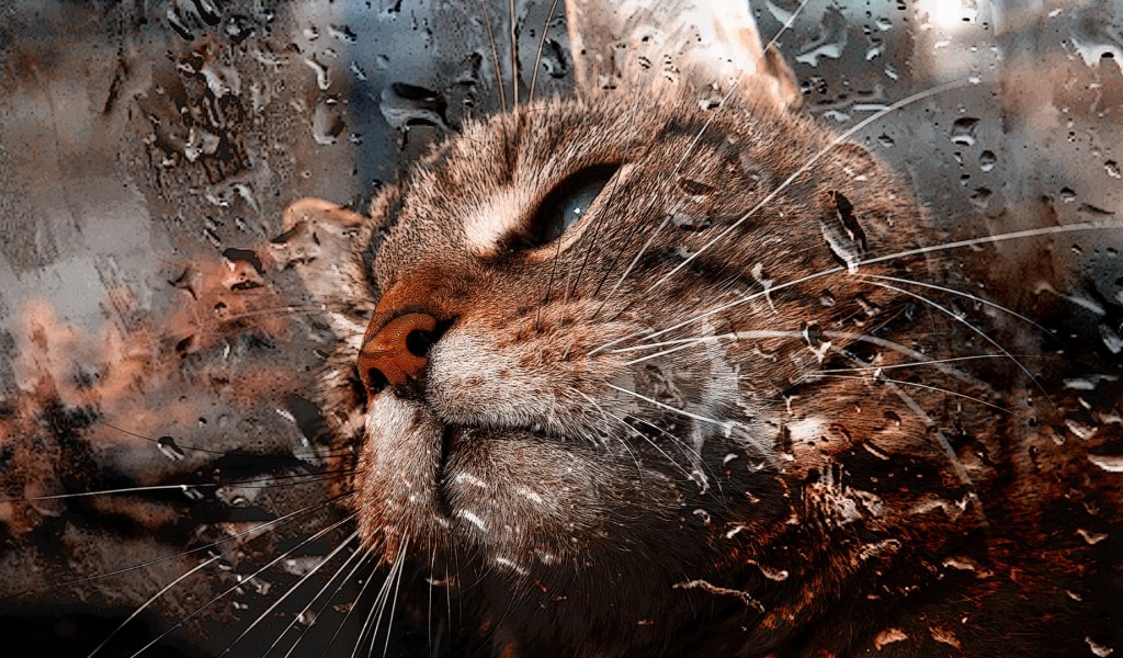 Cat's muzzle on the window HD Wallpaper - 1024x600