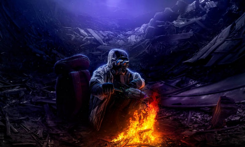 Cave man next to the fire HD Wallpaper - 800x480