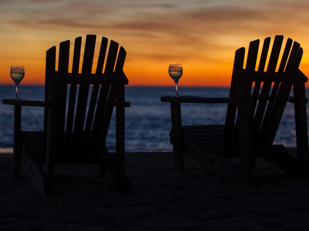 Chairs next to the beach HD Wallpaper - 1024x768