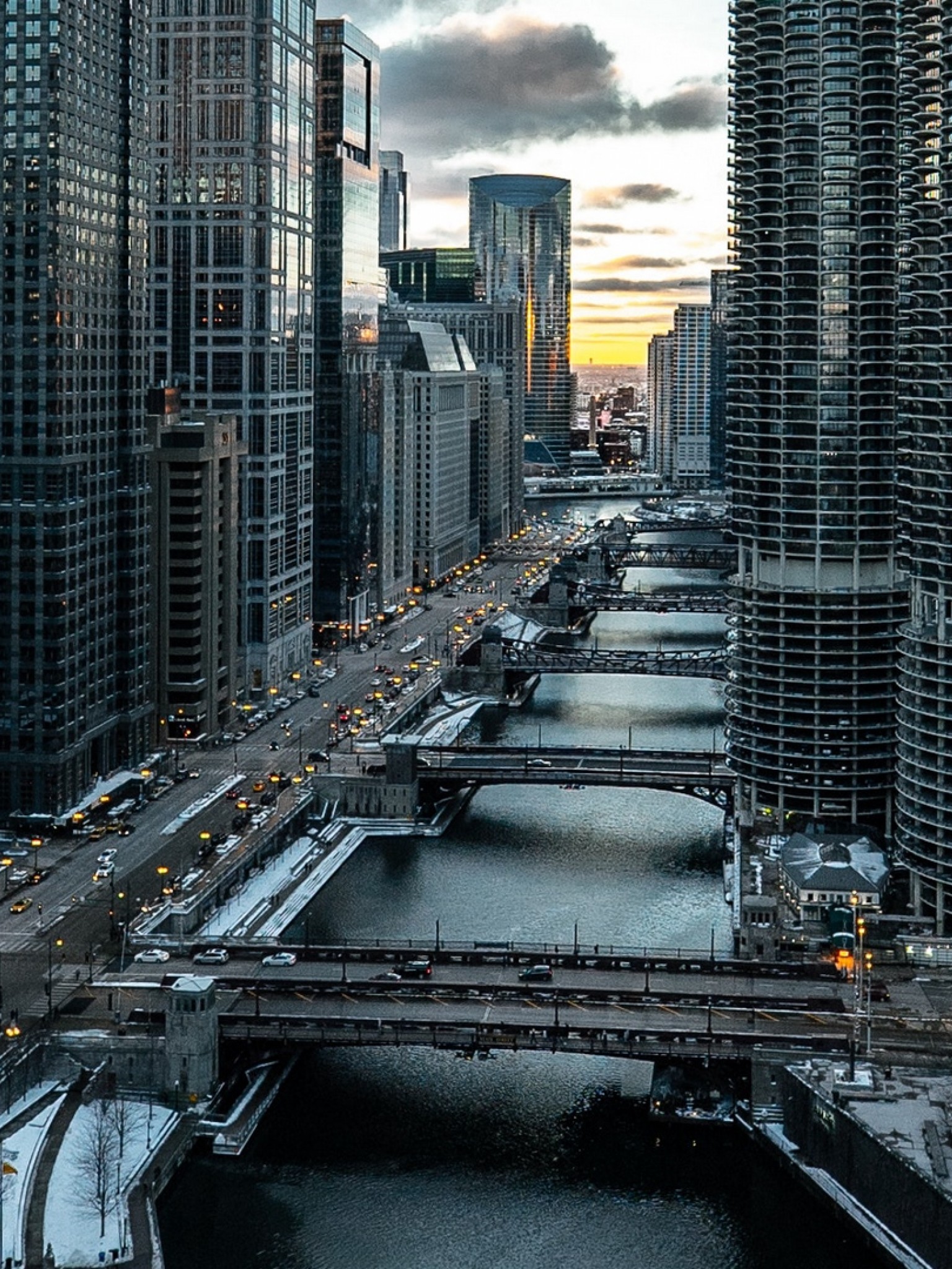 Chicago bridge aerial view HD Wallpaper - Retina iPad