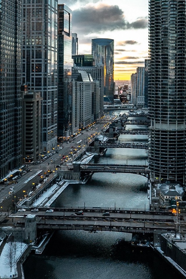 Chicago bridge aerial view HD Wallpaper - iPhone 4 / 4S / iPod
