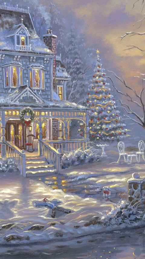 Children playing with snowman outside of their house HD Wallpaper - 480x854