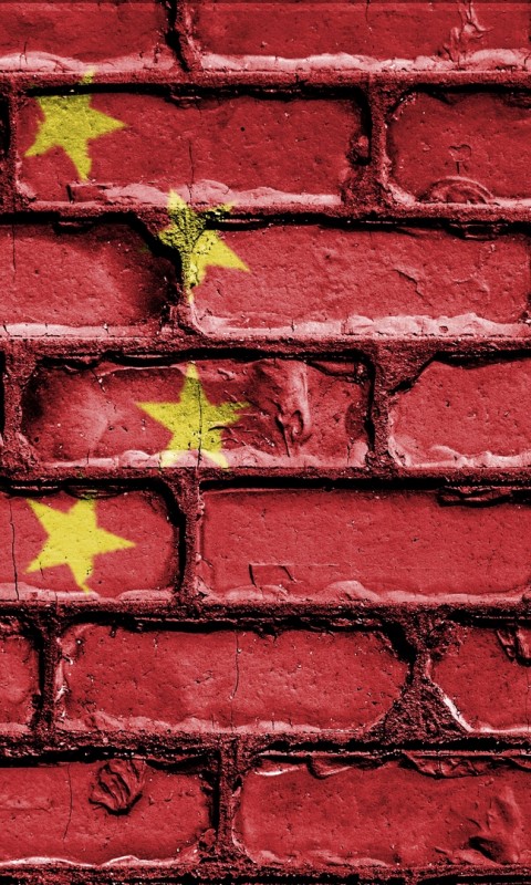 Chinese flag on a brick wall HD Wallpaper - 480x800