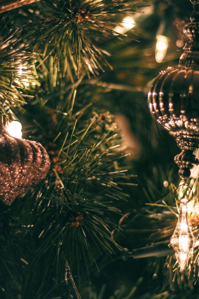 Christmas Baubles With String Lights HD Wallpaper - iPhone 4 / 4S / iPod
