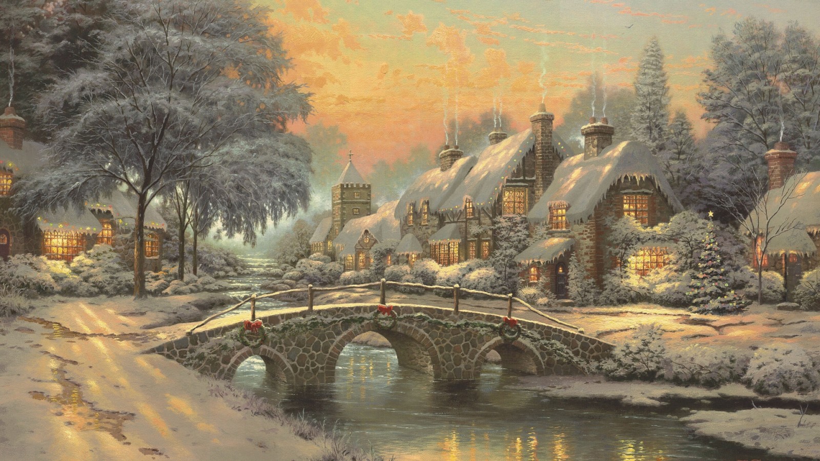 Christmas village covered in snow HD Wallpaper - 1600x900
