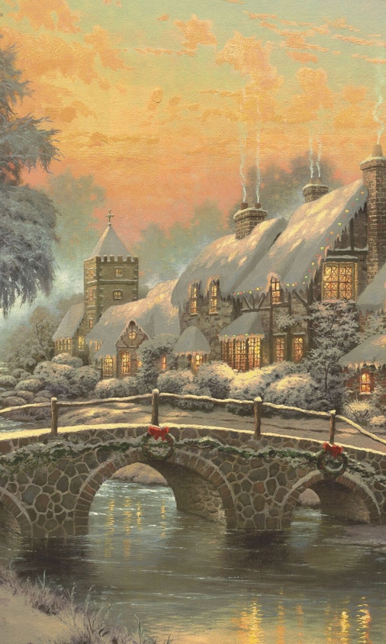 Christmas village covered in snow HD Wallpaper - 768x1280