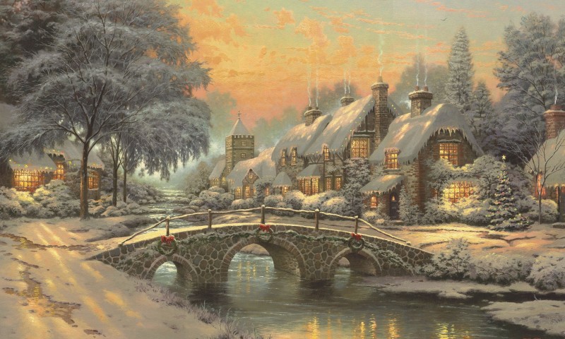 Christmas village covered in snow HD Wallpaper - 800x480