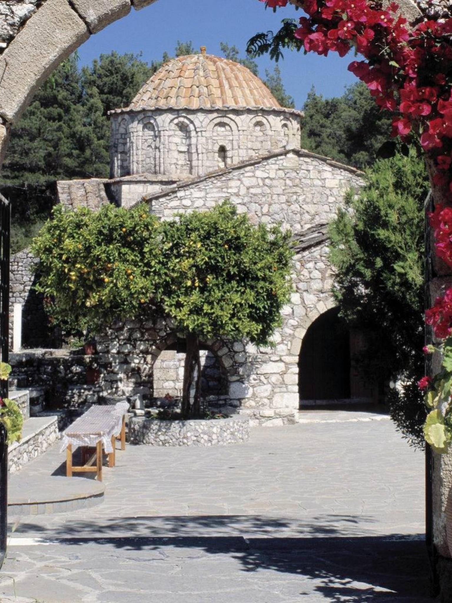 Church courtyard in Rhodes HD Wallpaper - Retina iPad