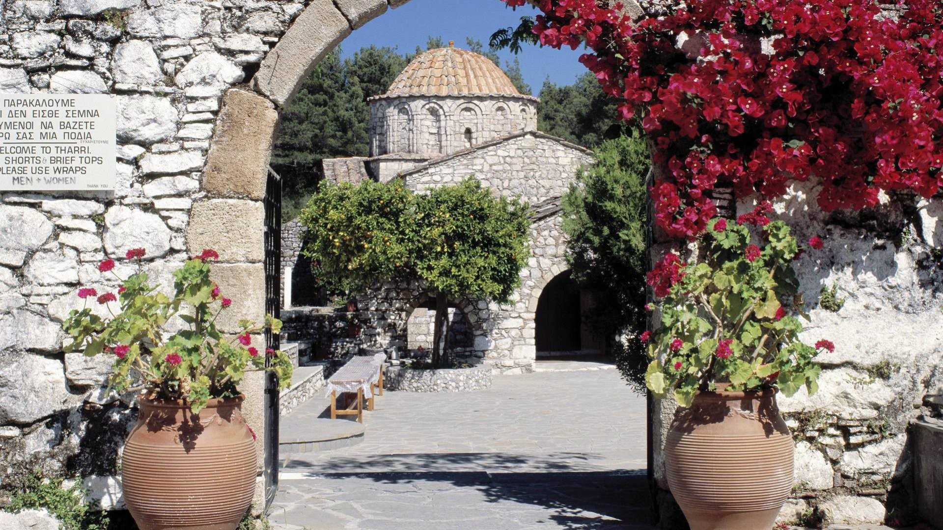 Church courtyard in Rhodes HD Wallpaper - iPhone 7 Plus / iPhone 8 Plus