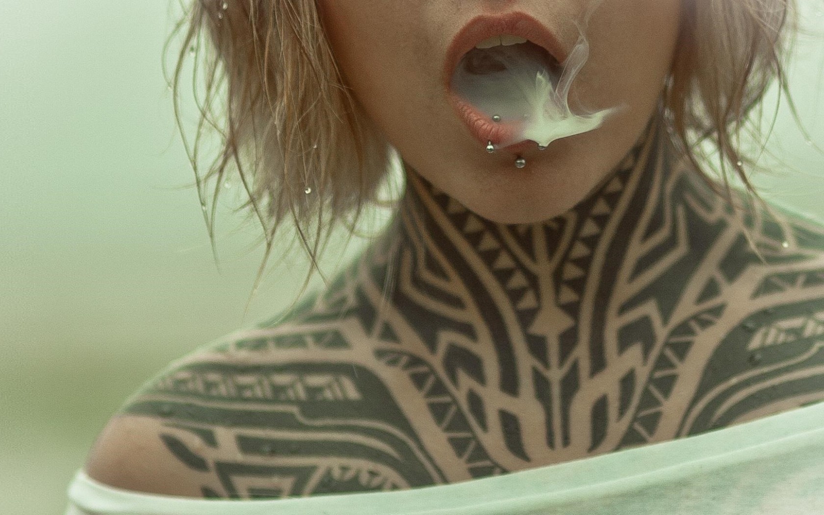 Cloud in girl's mouth HD Wallpaper - 1680x1050