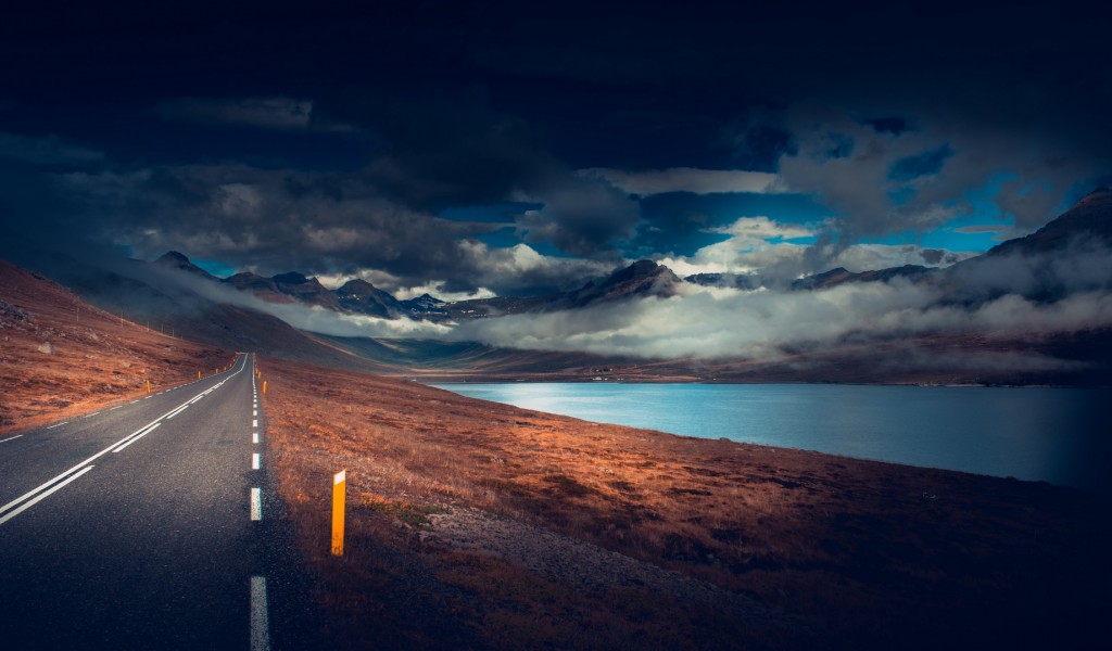 Cloudy day on the road HD Wallpaper - 1024x600