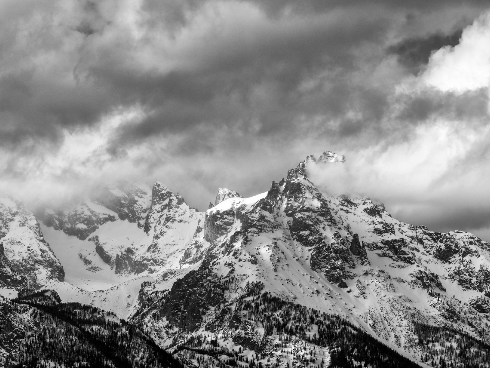 Cloudy weather over snowy mountains HD Wallpaper - 1600x1200