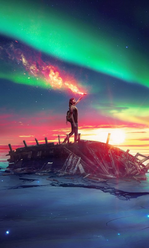 Colorful lights over a lake HD Wallpaper - 480x800