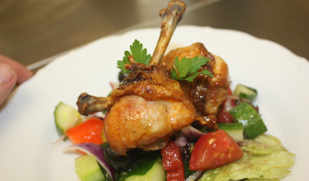 Cooked Chicken With Brown Sauce and Green Vegetables HD Wallpaper - 1024x600