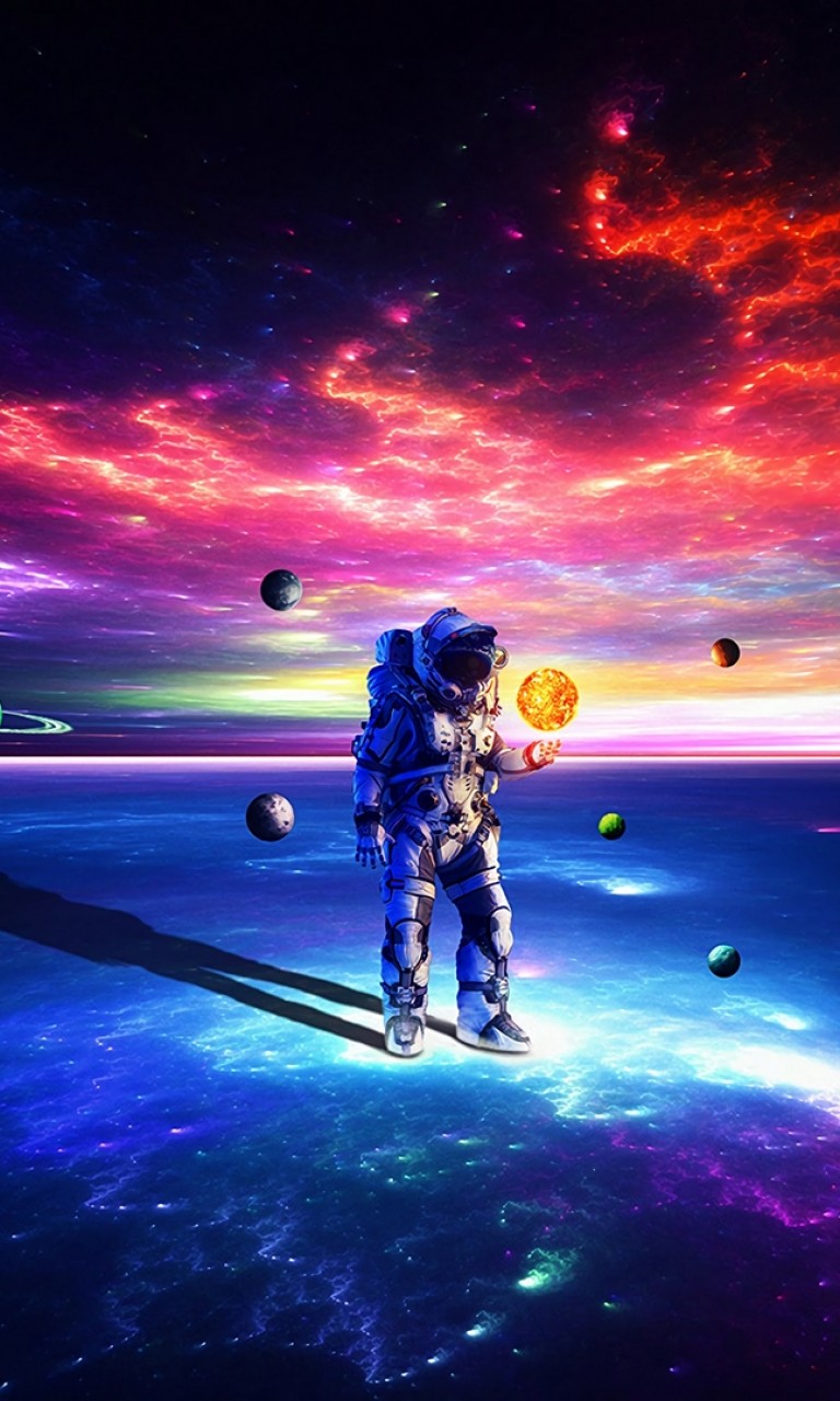 Cosmonaut walking on planets HD Wallpaper - 768x1280