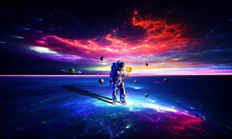 Cosmonaut walking on planets HD Wallpaper - 800x480