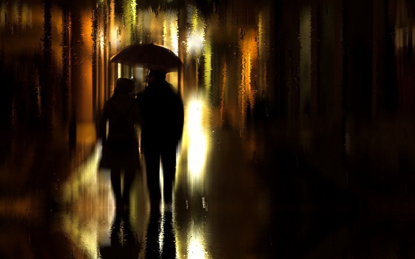 Coupl walking on a rainy night HD Wallpaper - 1440x900