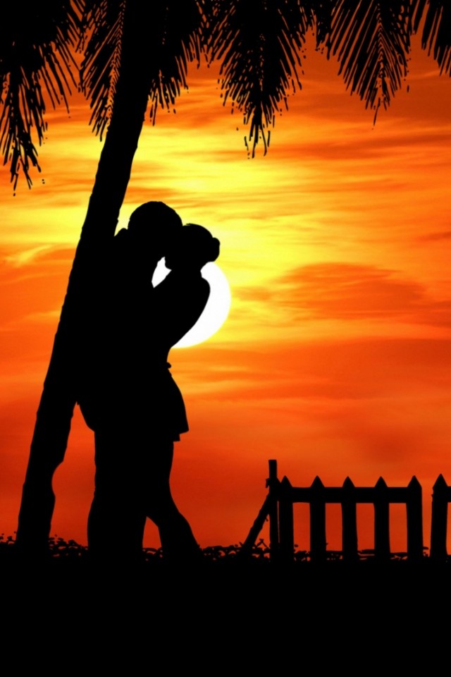 Couple silhouette kissing under a tree HD Wallpaper - iPhone 4 / 4S / iPod
