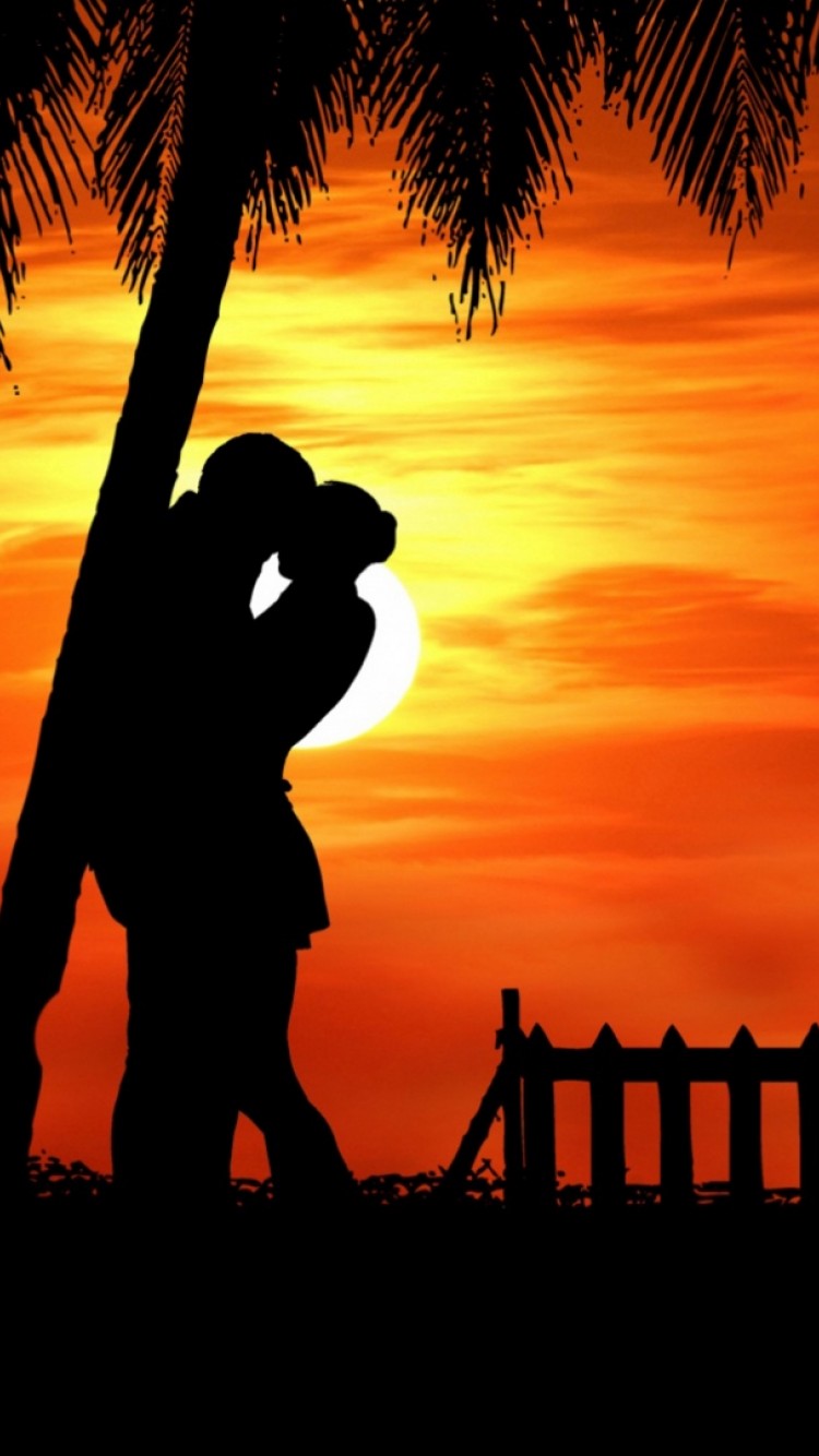 Couple silhouette kissing under a tree HD Wallpaper - iPhone 6 / 6S