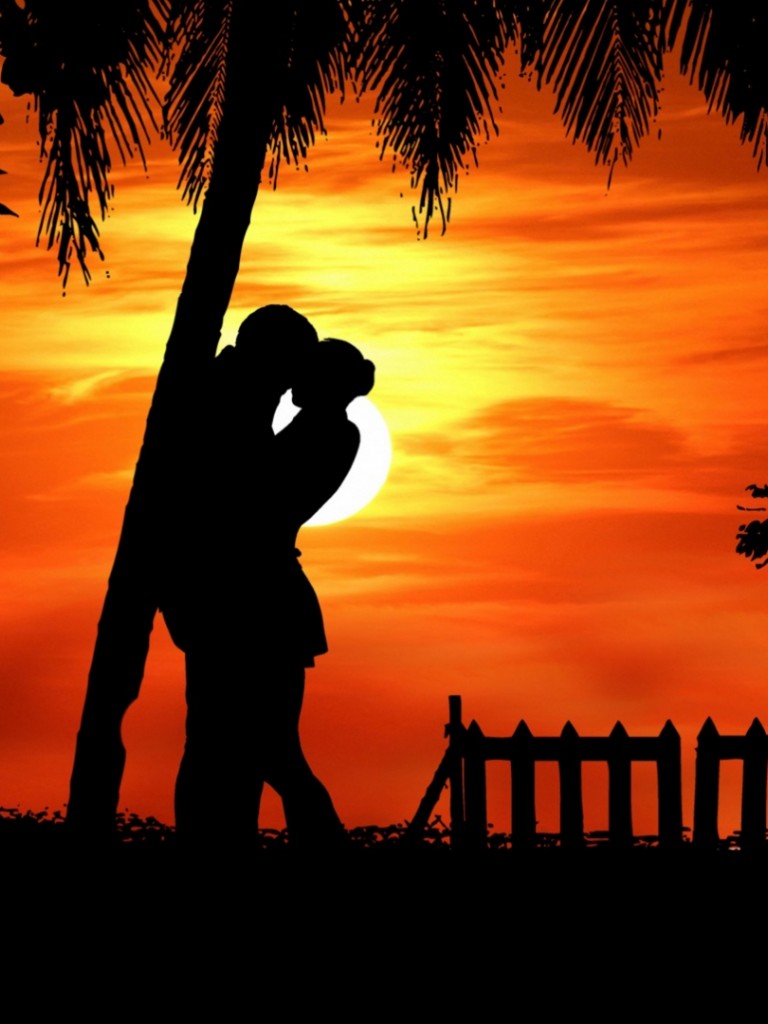 Couple silhouette kissing under a tree HD Wallpaper - Non-retina iPad
