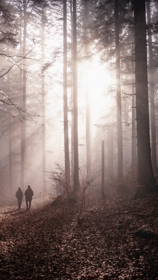 Couple silhouettes standing in a fogy forest HD Wallpaper - 540x960