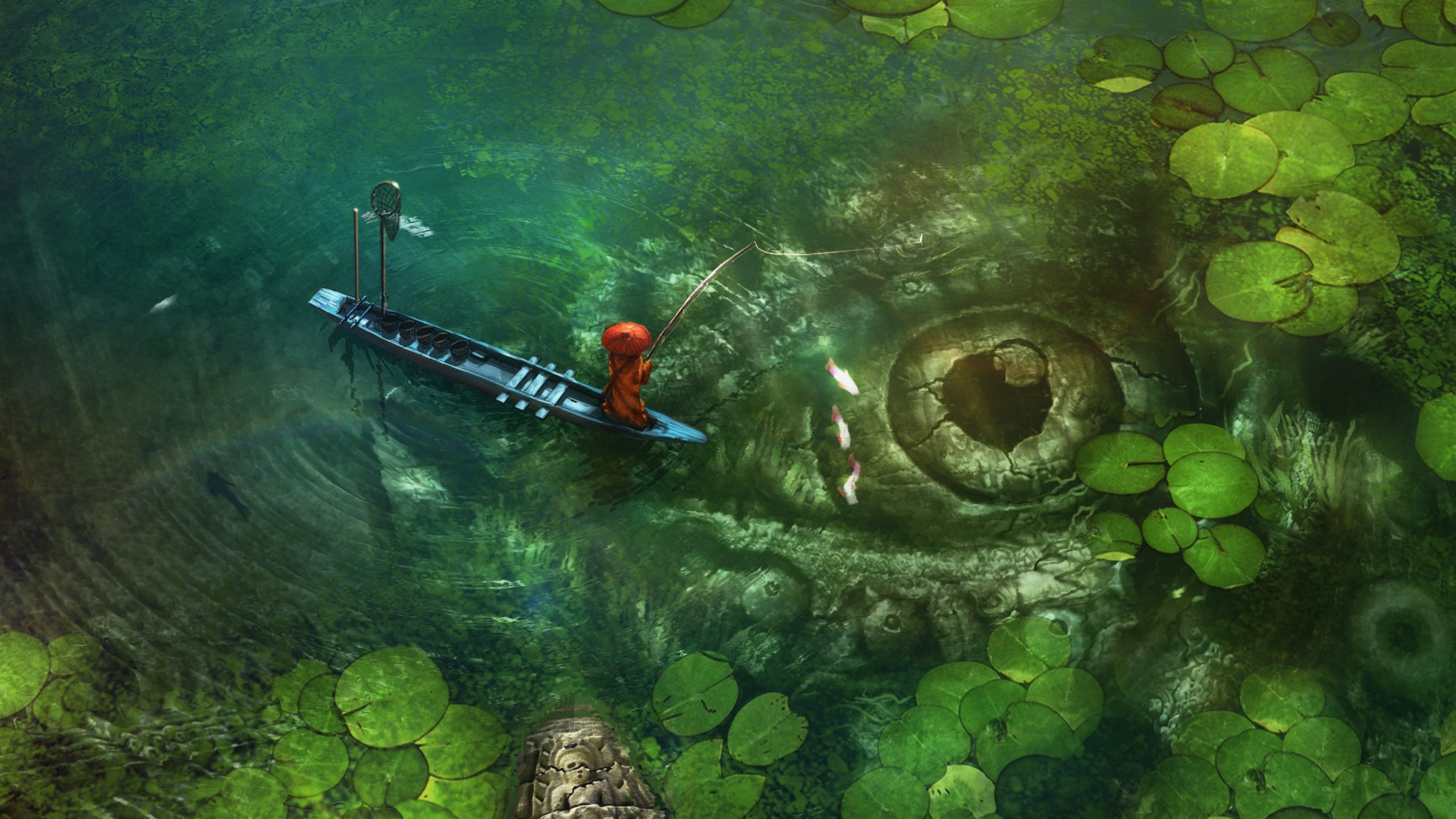 Crocodile Eye Water Girl Fishing HD Wallpaper - 4K Ultra HD