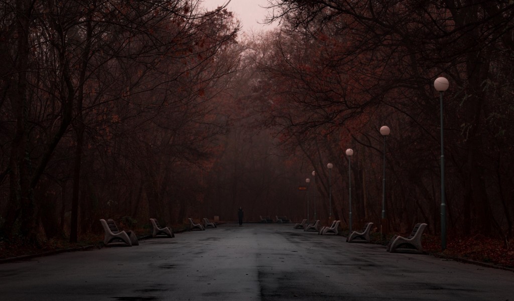 Dark foggy park HD Wallpaper - 1024x600