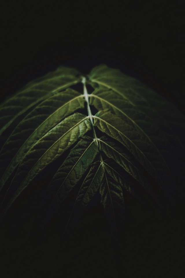 Dark image of green leaves HD Wallpaper - iPhone 4 / 4S / iPod